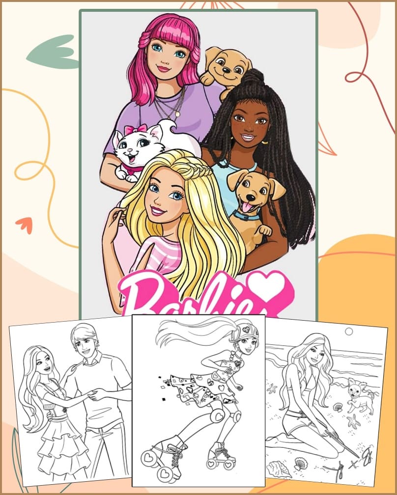 Barbie 30 coloring pages for kids girls